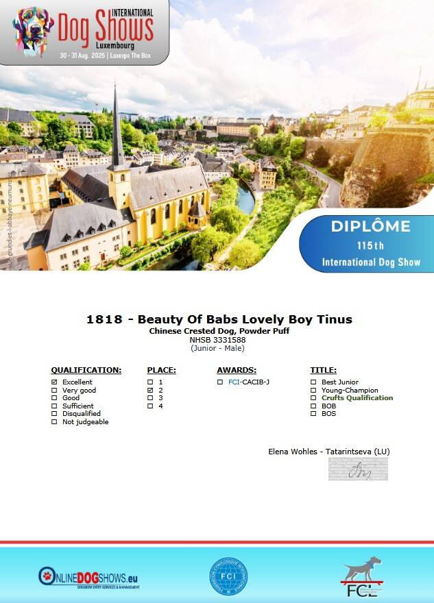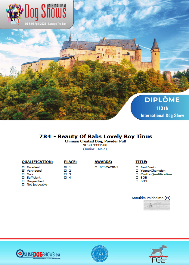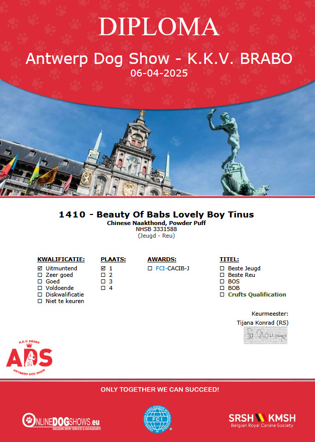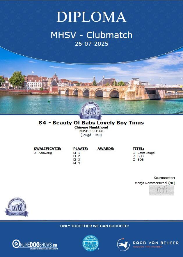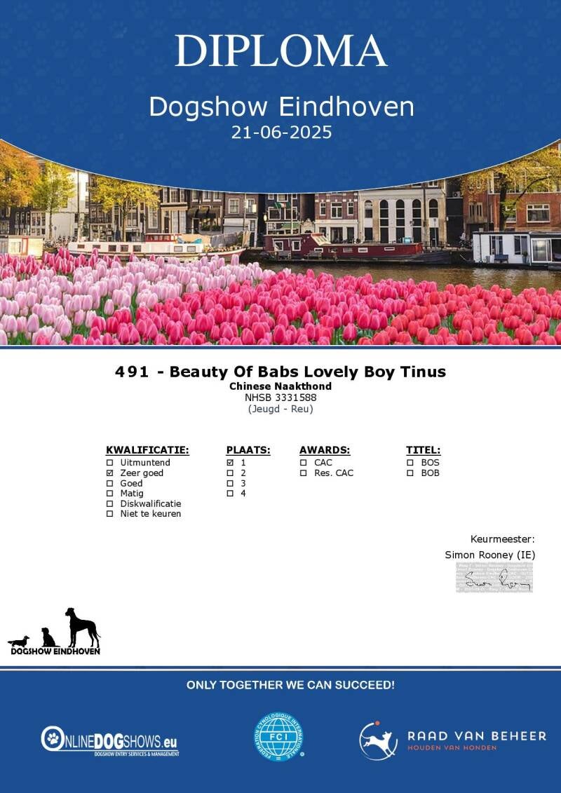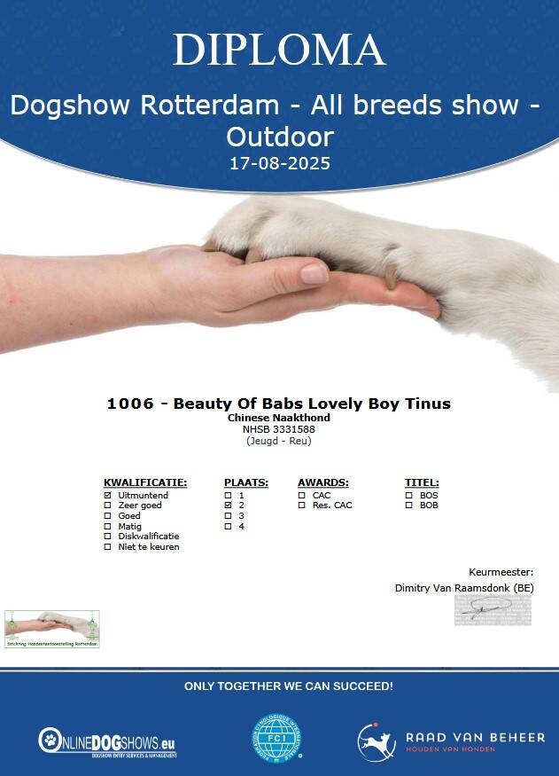 Stamboeknummer: 3331588 Ras / Variëteit: Chinese Naakthond Powder Puff Geslacht: Reu Geboortedatum: 10-04-2024 Kleur: WIT EN ZWART