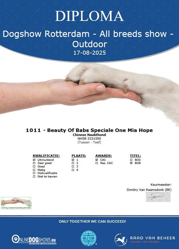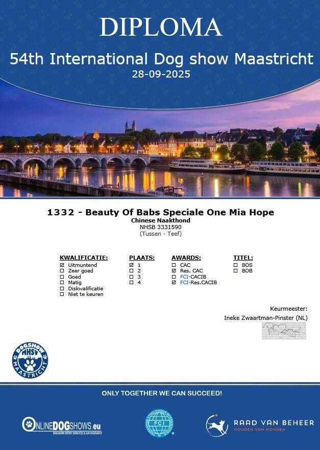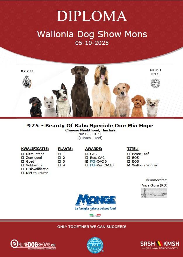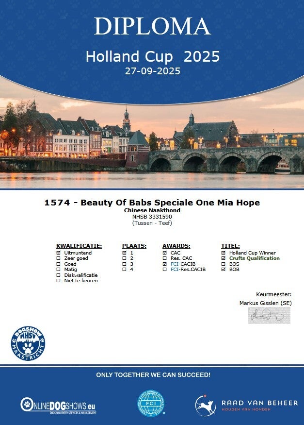 Stamboeknummer: 3331590 Ras / Variëteit: Chinese Naakthond Haarloos Geslacht: Teef Geboortedatum: 10-04-2024 Kleur: SABLE EN WIT